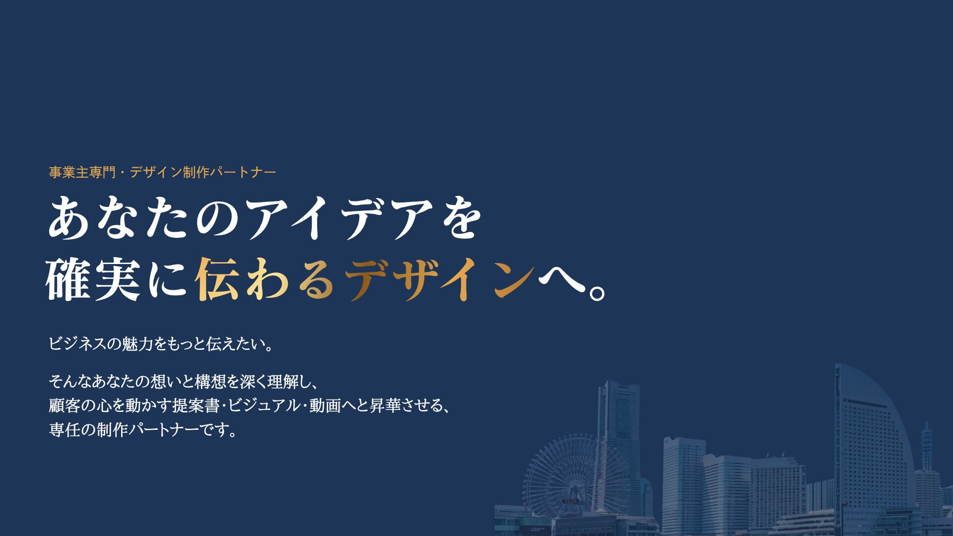 ざっくりとしたイメージやアイデアからでも、ビジネスの文脈を読み取り成果につながるデザインに仕上げます。